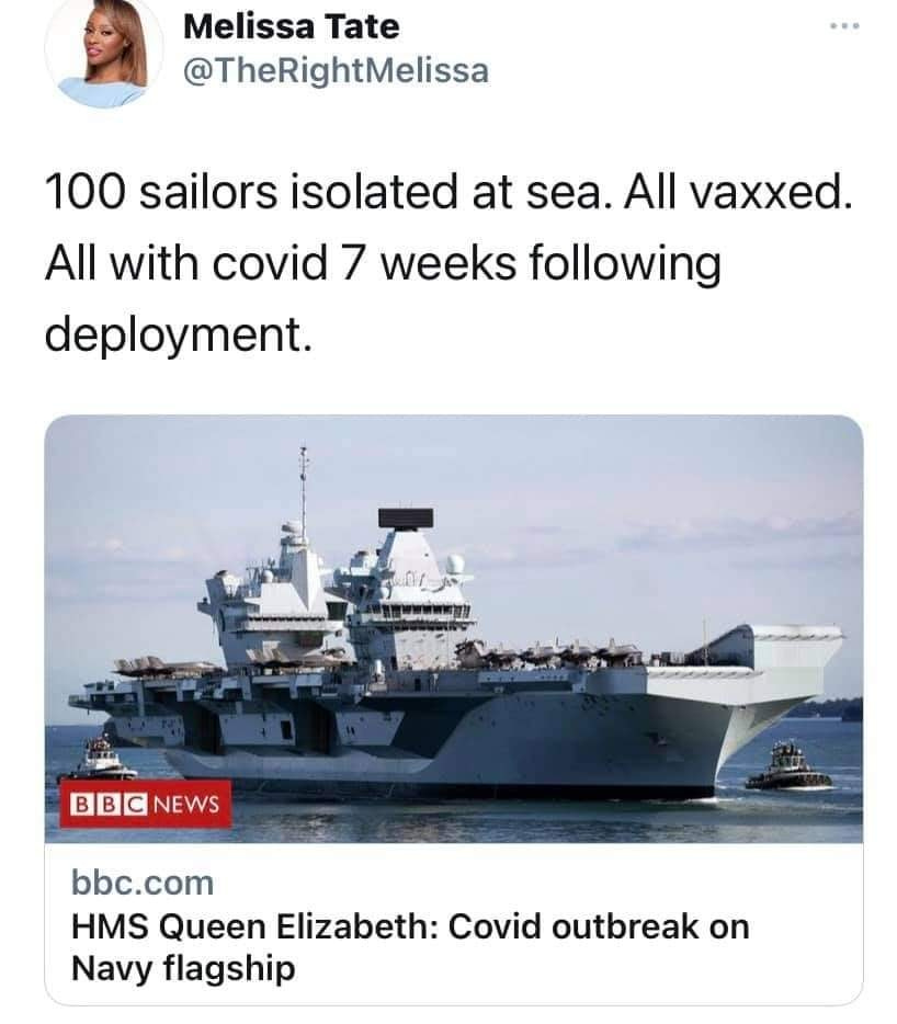 Everyone getting on board the HMS Queen Elizabeth gets the shot. That’s 100% of people on the ship that got the shot.