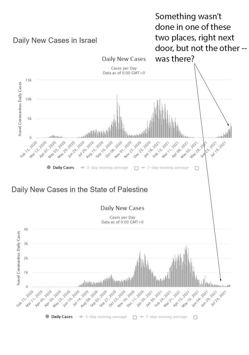 So LOGICALLY, why does Israel have a SPIKE in cases and Palestine does not?