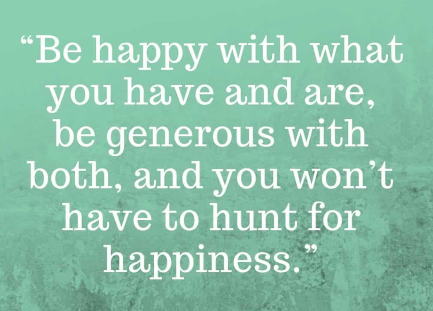 Be Happy With What You Have and Are, Be Generous With Both, and You Won't Have To Hunt For Happiness