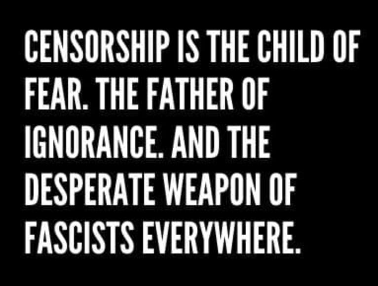 Censorship robs Us of Our freedom to communicate, and defrauds the Ones kept from data. Indeed, censorship is grossly unEthical.