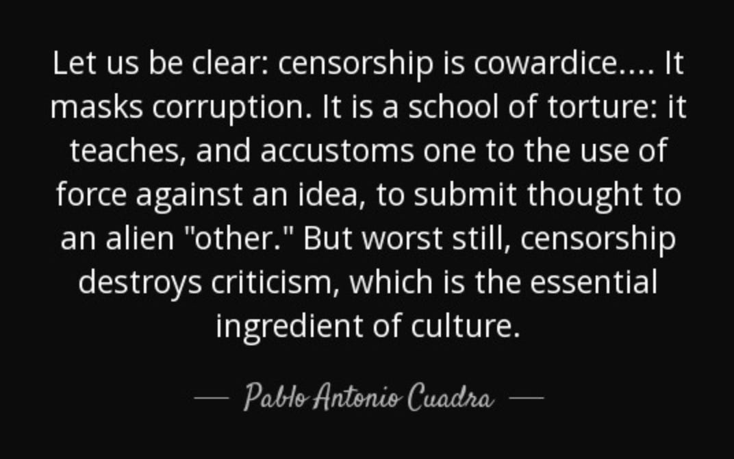This goes against natural law itself. As human beings we have an inherent right to think independently and exchange ideas openly as well as make our own judgements. Censorship has no faith in individuals’ ability to critically engage difficult information or think through things for themselves. It is immoral as it depends on coercion to suppress the decisions of others.