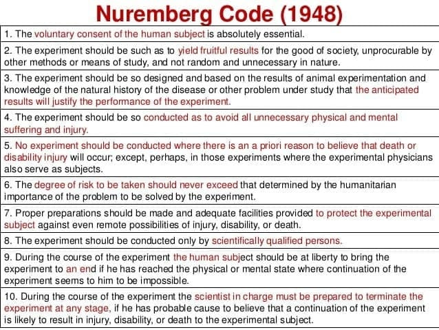 Ghooi, R. (2011). The Nuremberg Code–A critique. US National Library of Medicine, National Institutes of Health. [online] Available here: https://www.ncbi.nlm.nih.gov/pmc/articles/PMC3121268