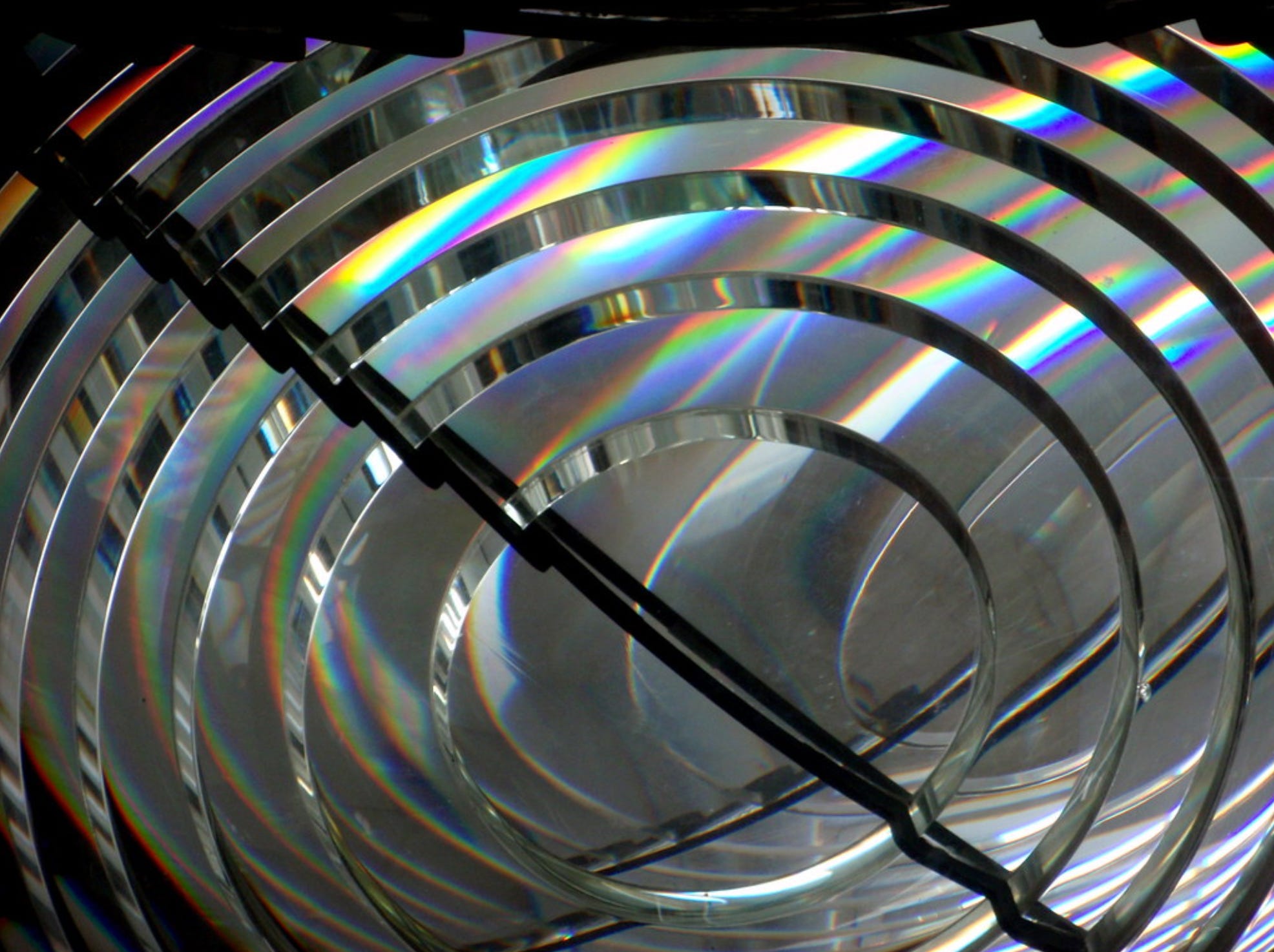 Fresnel lenses enhanced lighthouse illumination by using carefully calculated prisms and reflectors to capture nearly all light from a lamp and direct it into a tight, virtually parallel beam. To mold the light this way, Fresnel divided the lens into concentric annular sections, each with prism ring oriented for proper refraction. The prisms collapsed the beam's divergence, while curved reflectors minimized stray light loss.
