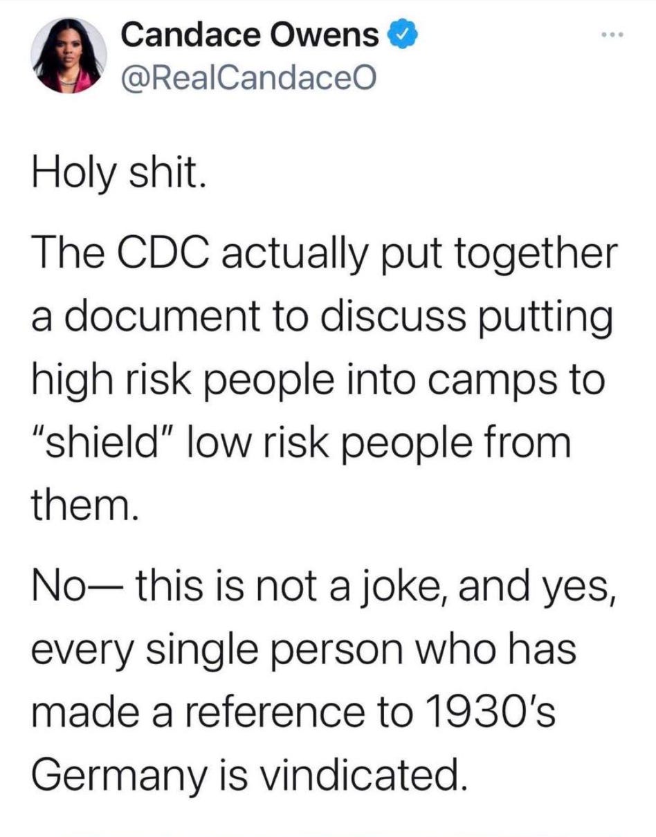 What Candace Owens may not realize (and none of this is her fault - it’s literally her job to get the information out there as plainly and accessibly as possible and she is phenomenal at it) is that she's inadvertently amplifying their scare tactics and their message which could then be interpreted several ways.