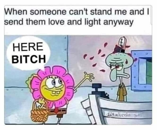 "Sending them love and light anyway, here bitch! " 😂😂😂 Exactly!