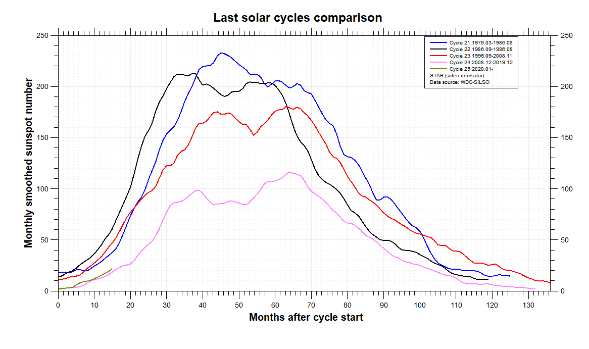 WDC-SILSO. (2021). Last solar cycles comparison. Solen. [online] Available here: http://solen.info/solar/images/comparison_recent_cycles.png