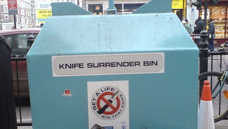 In April 2019, Somerset tried to get citizens to relinquish their knives by placing them in a collection bin.