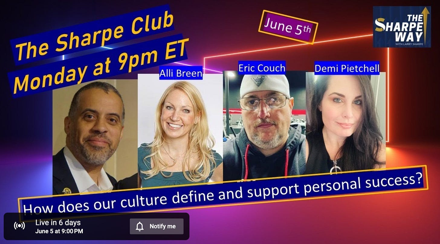 Join Us LIVE On The Sharpe Club This Monday Night To Discuss How Our Culture Defines and Supports Personal Success