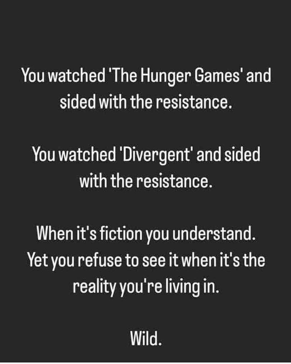 “You watched Hunger Games and Divergent and sided with the resistance. When it’s fiction you understand, yet you refuse to see the reality you’re living in”