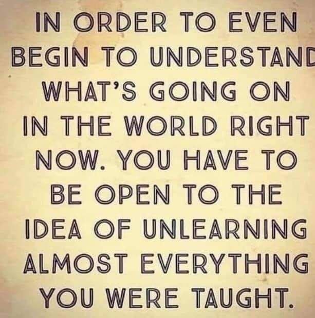 MEME DROP #132: In Order To Even Begin To Understand What’s Going On In The World Right Now, You Have To Be open To The Idea Of Unlearning Almost Everything You Were Taught
