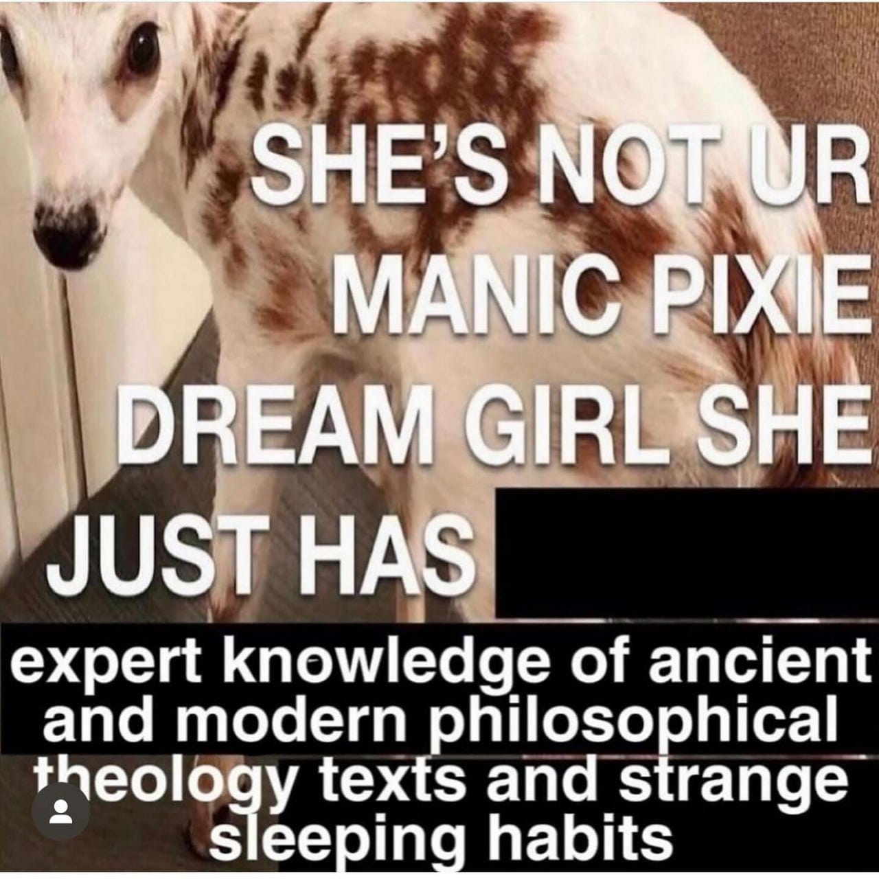 MEME DROP #139: She’s Not Your Manic Pixie Dream Girl. She Just Has Expert Knowledge of Modern Philosophical Theology Texts And Strange Sleeping Habits.