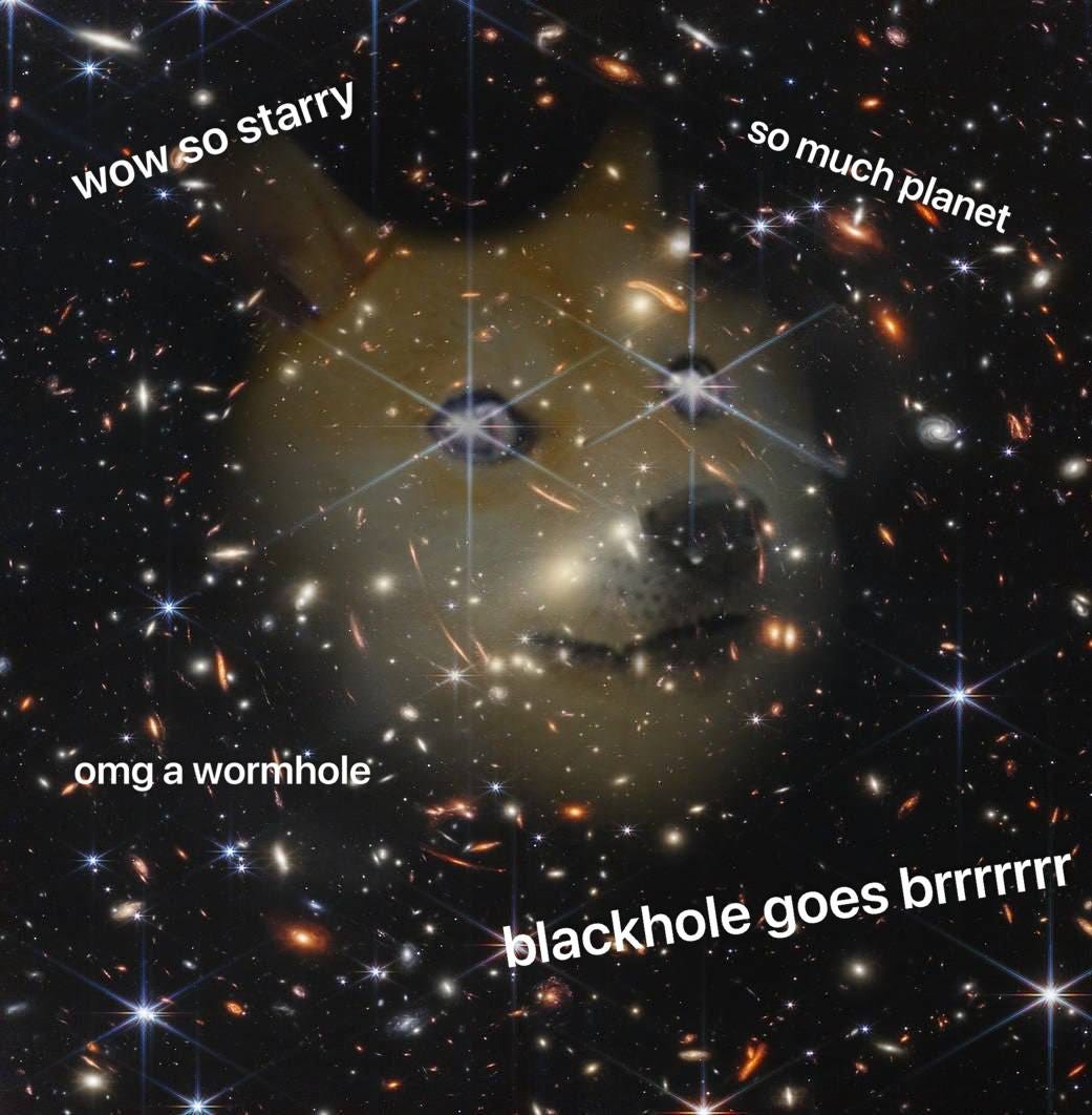 MEME DROP #144: Time Displacement Field Ahead. Wow. So Starry. So Much Planet. OMG A Wormhole. Blackhole Goes BRRRRRR.