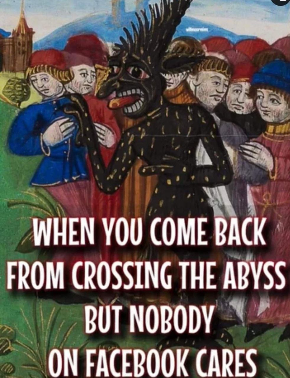 Hmm...that part about crossing the abyss, yet no one on-substack-cares.