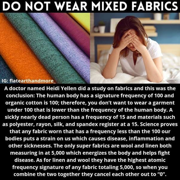 It's fascinating to read about the frequency of fabric and the effects it has on the human body. Combine that with music frequency, they've changed, and I can see how an individual loses his harmony and equilibrium.