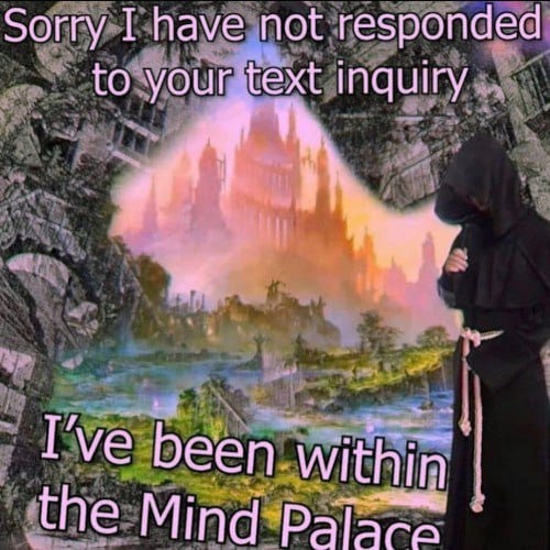 MEME DROP #191: Sorry I Have Not Responded To Your Text Inquiry. I’ve Been Within The Mind Palace.