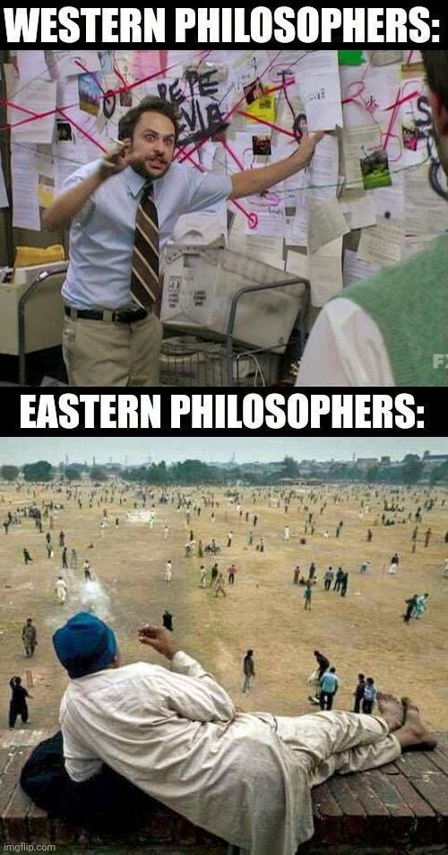 The Western & Eastern philosophers meme is hilarious and completely on point 🤣