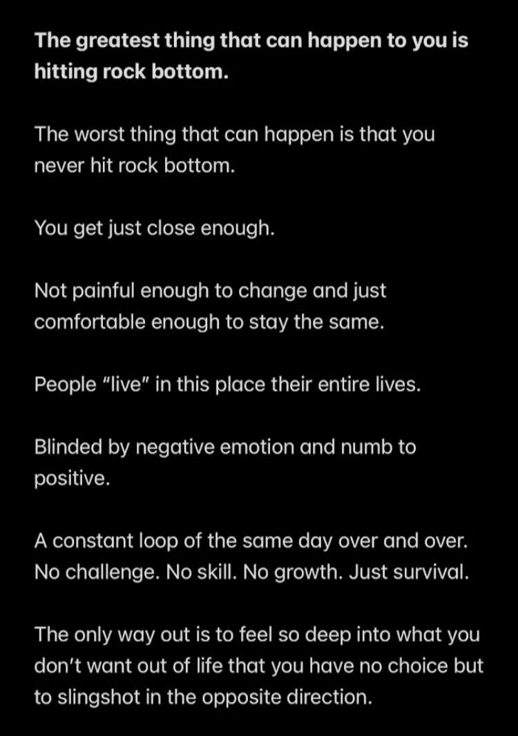 MEME DROP #205: The Greatest Thing That Can Happen To You Is Hitting Rock Bottom. The Worst Thing That Can Happen Is That You Never Hit Rock Bottom.