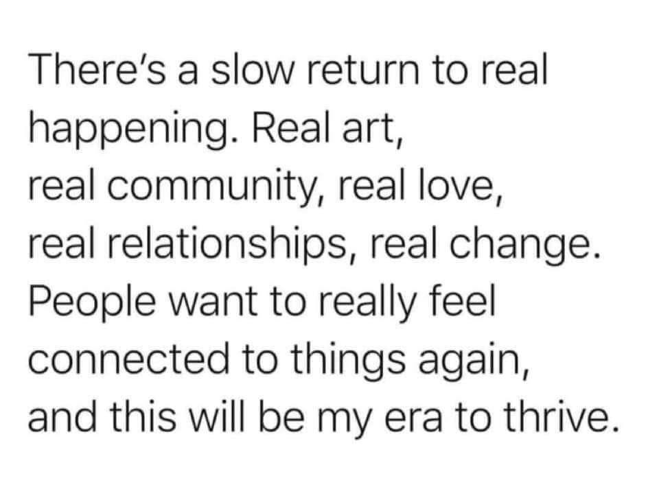 MEME DROP #21: There's A Slow Return To Real Happening. Real Art, Real Community, Real Love, Real Relationships. Real Change.