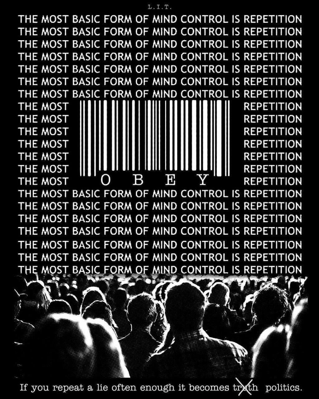 MEME DROP #220: The Most Basic Form Of Mind Control Is Repetition. If You Repeat A Lie Often Enough It Becomes Politics.