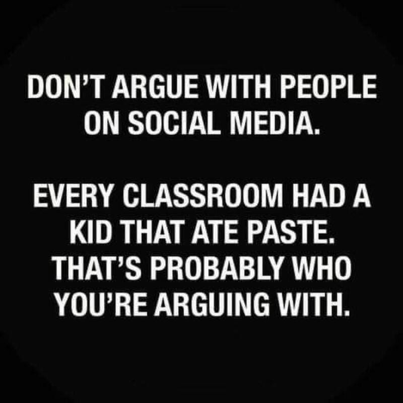 You're not arguing with the kid that ate paste. You're arguing with the kid that ate his boogers.