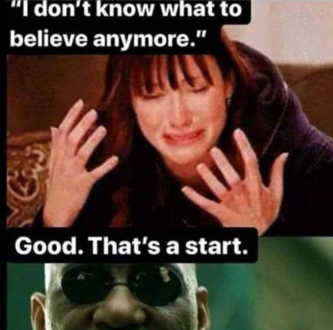 MEME DROP #282: “I Don’t Know What To Believe Anymore.” Good. That’s A Start.
