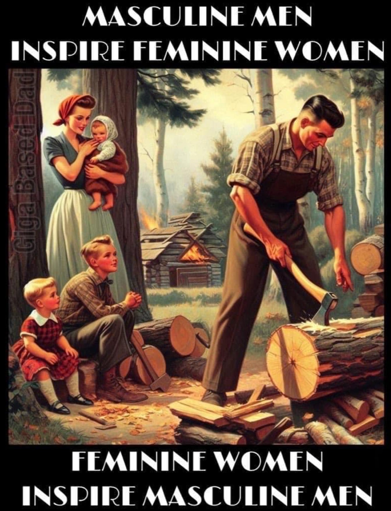 Looks like the pioneer family in the woods have a burning cabin in the background