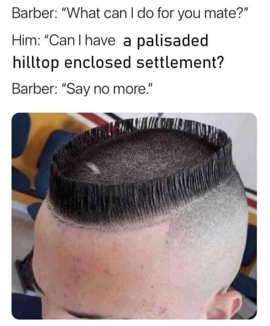 —If that barber really wanted to impress, he would have added a motte and bailey.