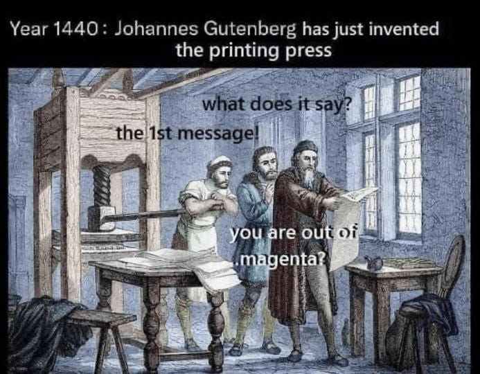 MEME DROP #294: What Does It Say? First Message! You're Out Of Magenta....