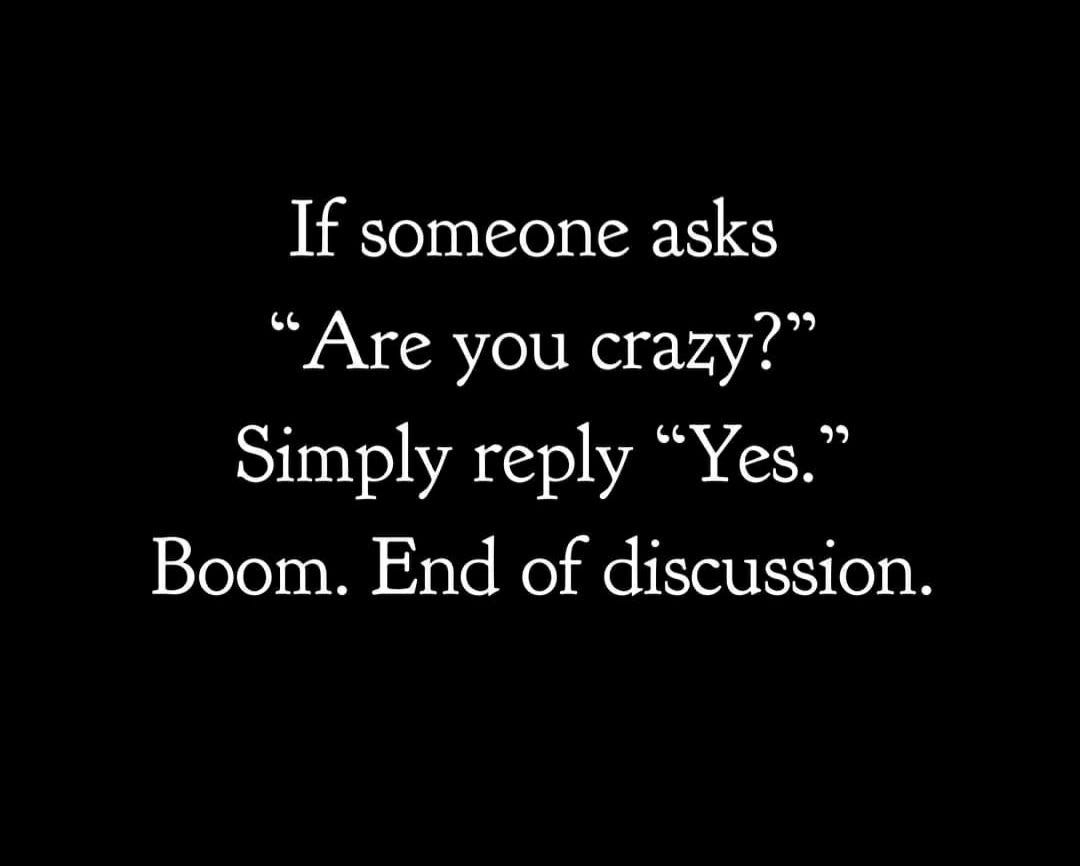 MEME DROP #320: If Someone Asks, “Are You Crazy?” Simply Reply “Yes.” Boom. End Of Discussion.