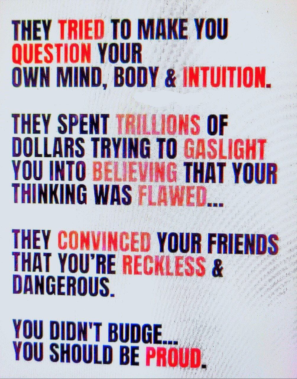 Anecdotally I’ve noticed the people who trusted the media, followed the “recommendations” and vigorously encouraged others to follow the science were generally people who were either innocent of ever being manipulated in the past or were enablers. I also wonder if this means the time it takes an individual to recover from an abusive relationship is indicative of the recovery process for society? What are your thoughts?