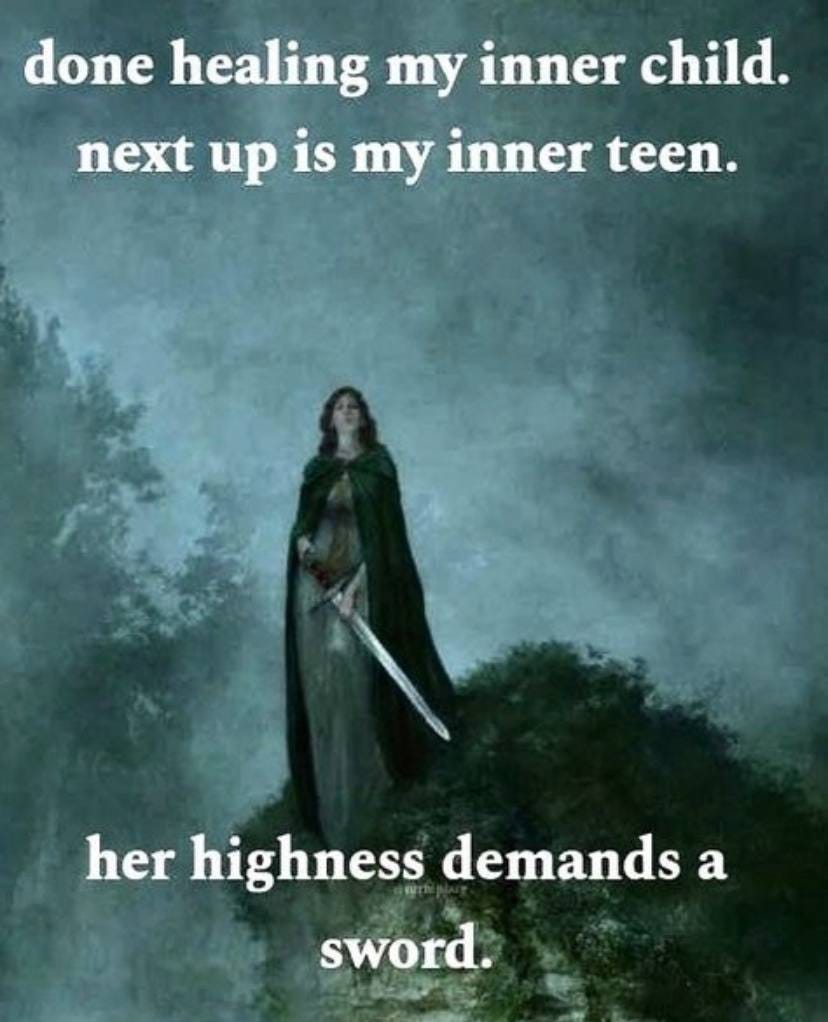 MEME DROP #360: Done Healing My Inner Child. Next Up Is My Inner Teen. Her Highness Demands A Sword.