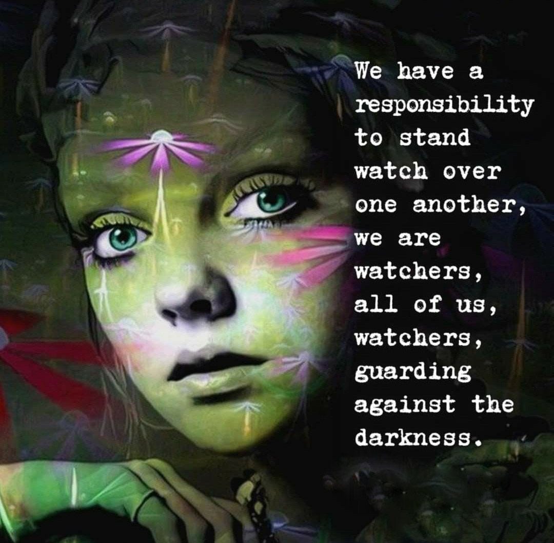We are all watchers, and we need to be watchful. For there are terrible things in the evil realm that come through into our world, and we must watch for them. Blessed are the watchers who sound the alarm when danger is nearing. Amen.