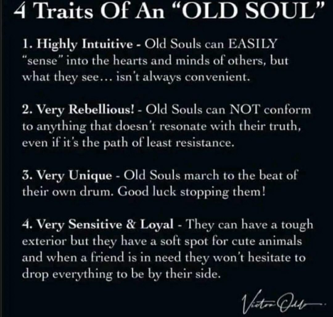 When I was five years old, my grandma's sister, so my great aunt, Dori, said that I have an old soul. At the time I didn't know what it meant, so I asked, and the answer Dori gave reflects the meme about old souls in this collection.