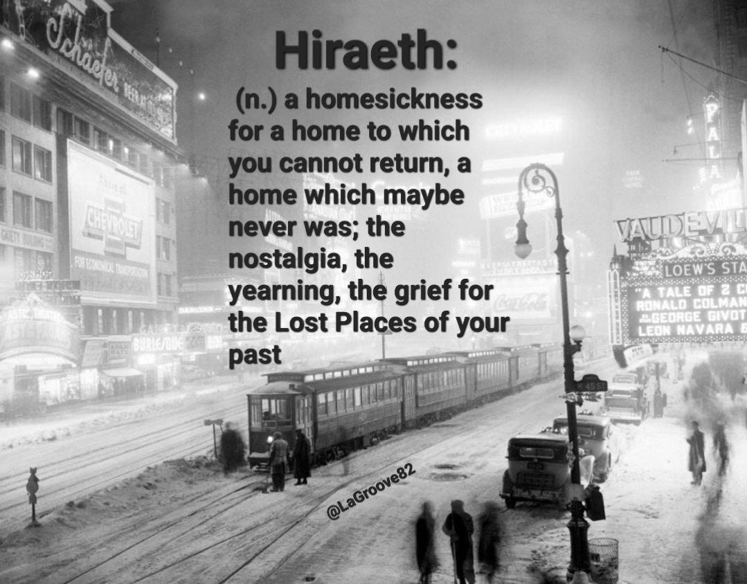 MEME DROP #62: Hiraeth: A Homesickness For A Home To Which You Cannot Return, A Home Which Maybe Never Was; The Nostalgia, The Yearning, The Grief For The Lost Places Of Your Past