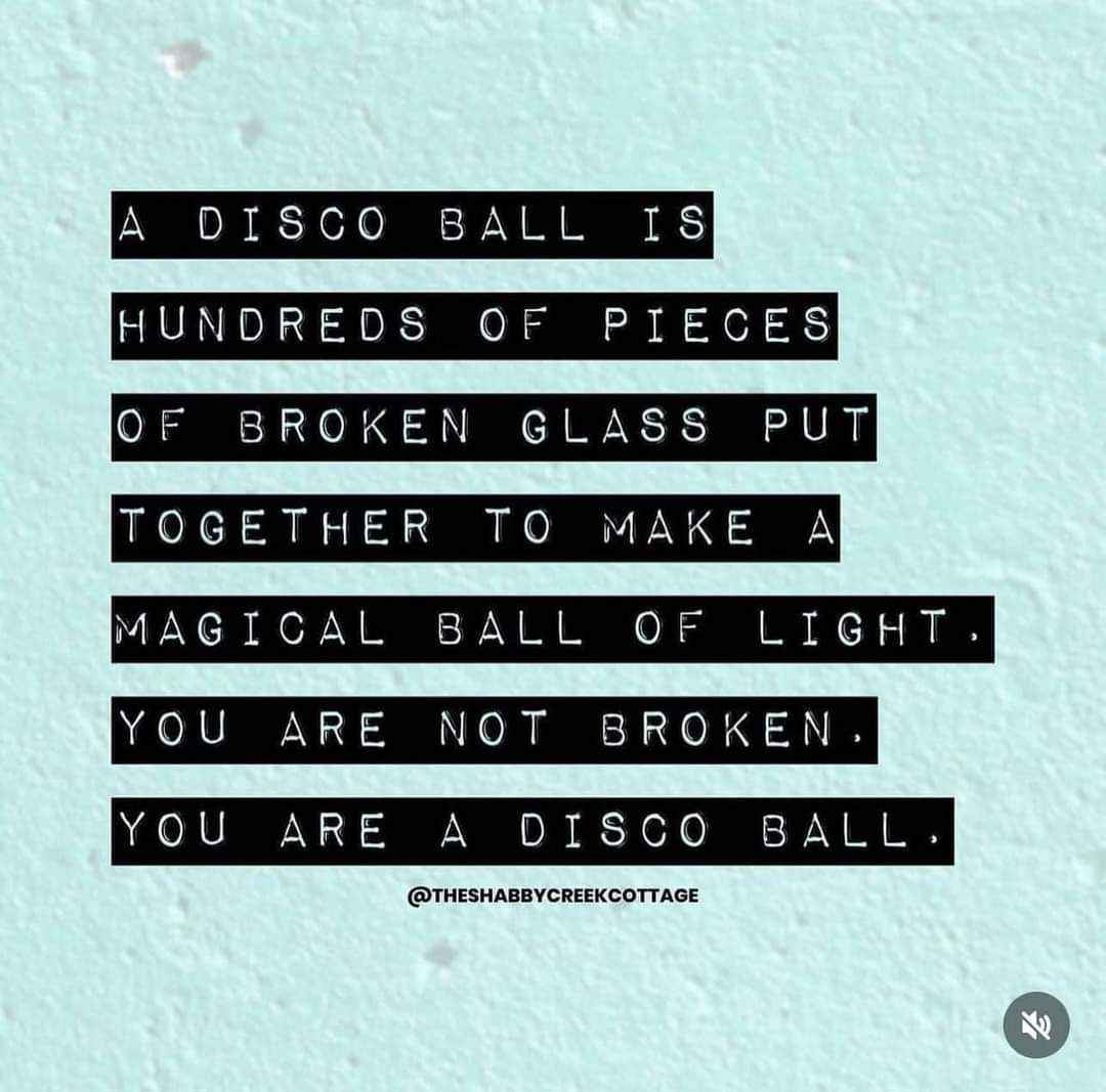 MEME DROP #66: A Disco Ball Is Hundreds Of Pieces Of Broken Glass Put Together To Make A Magical Ball Of Light. You Are Not Broken. You Are A Disco Ball.