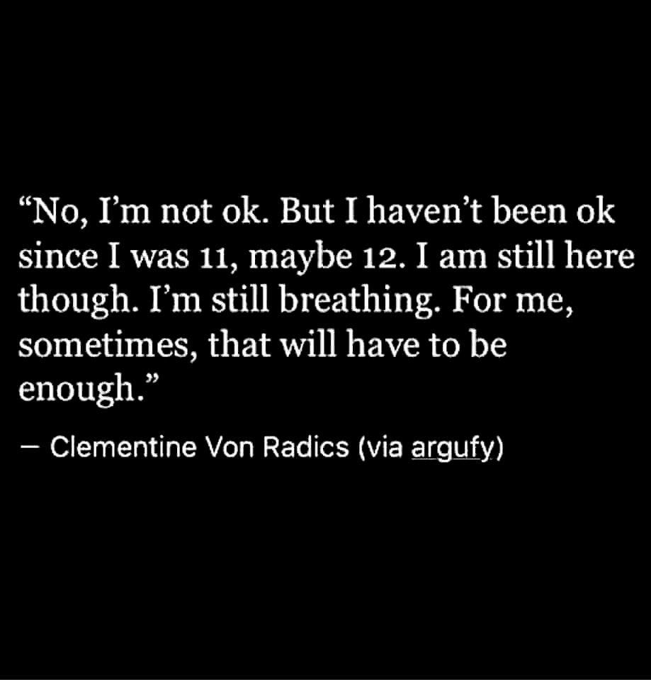 My earliest memory is from about age 2, being beaten by my dad. So that's from when I have been "not alright" and "not okay." We did talk about it before he passed away and I did forgive him, but that pain is deeply embedded in who I had to become to get through a childhood of violence at home, at school, in the neighbourhood, and everywhere else.