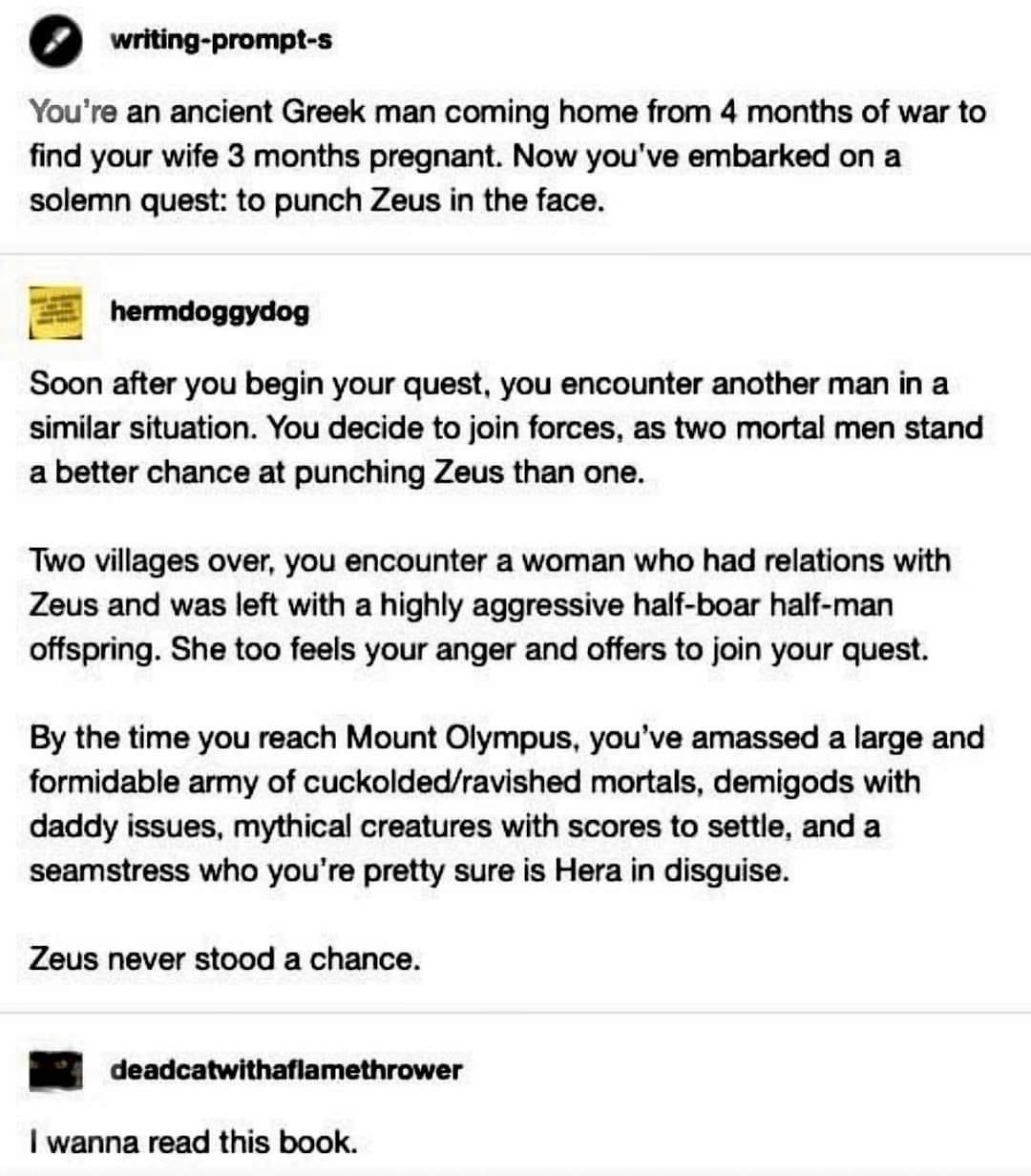 An Exquisite Corpse-Style meme battle between Demi Pietchell of The Starfire Codes and Ratio Bradbornius of Startle Magazine