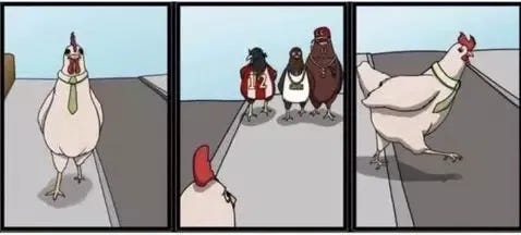 BTW: I thought I was going to die laughing at the one based on 'The 300' - "You can have them..." 😂🤣😂 And at least NOW we know why the chicken REALLY crossed the road 😉