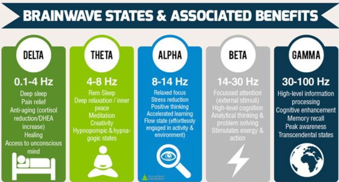 Those advocating raising one's vibration or frequency are essentially promoting shifting one's brain into wave states like alpha, theta, and gamma to develop a broader spectrum of awareness and abilities.