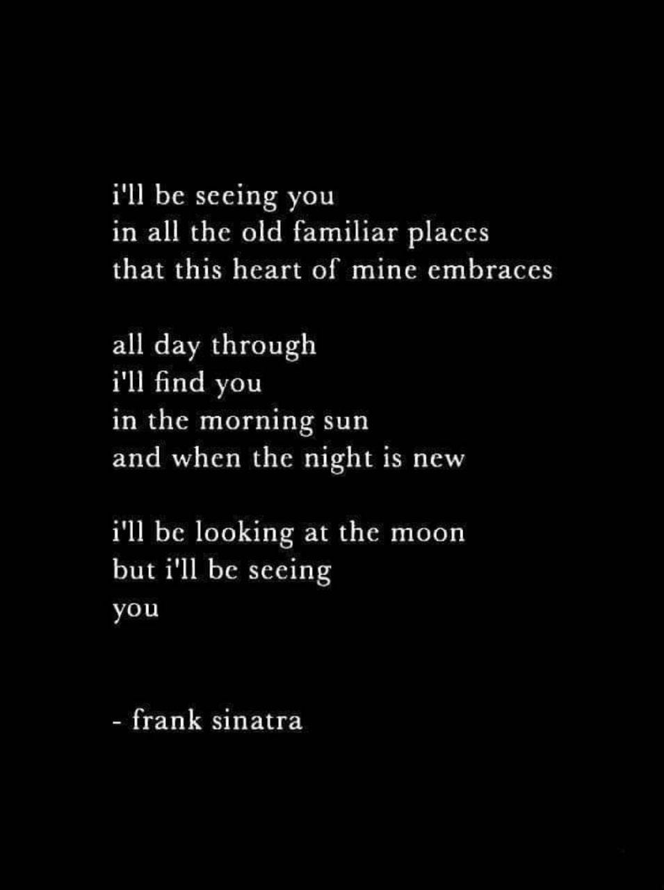 Not that it matters I guess but that is not a Frank Sinatra quote. He sang the song but so did Billie Holiday, Andy Williams, and many others and it was written by Sammy Fain and Irving Kahal. One of my faves. 💕