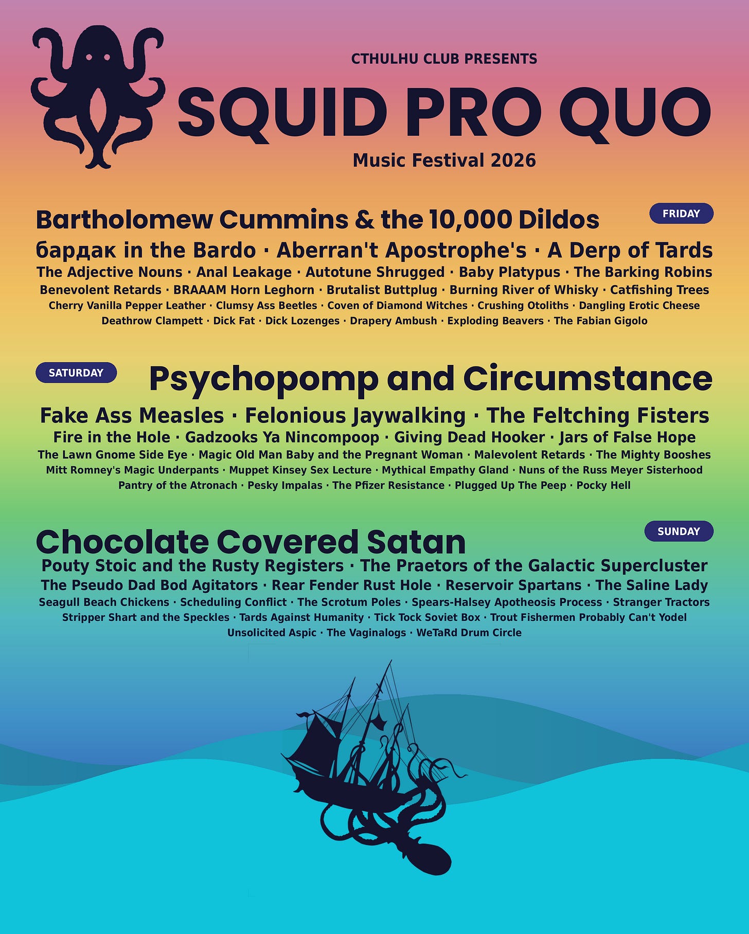 Welcome to the SQUID PRO QUO Music Festival 2026, presented by Cthulhu Club.