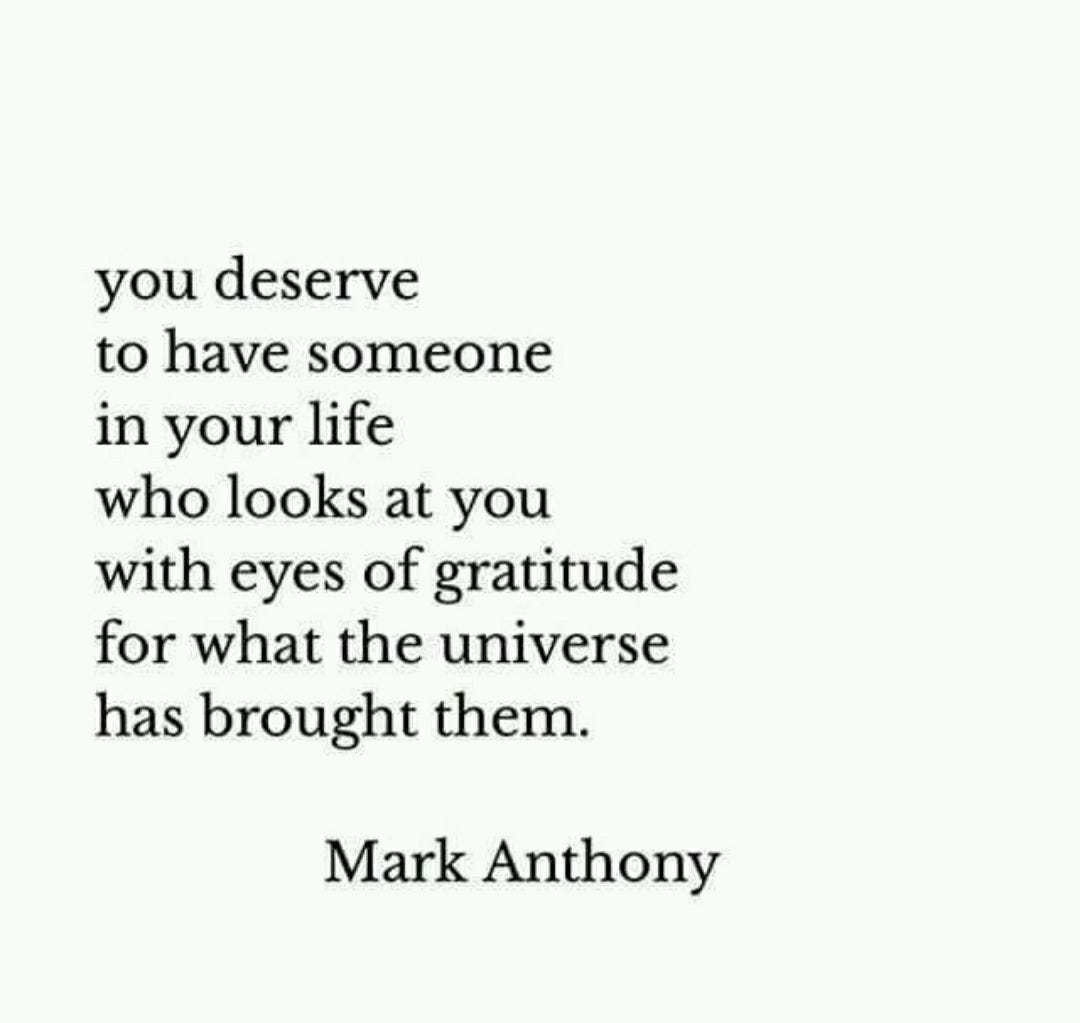 You Deserve To Have Someone In Your Life Who Looks At You With Eyes Of Gratitude For What The Universe Has Brought Them