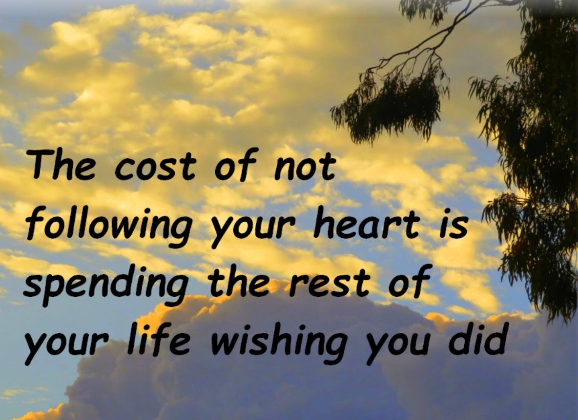 The Cost of Not Following Your Heart Is Spending the Rest of Your Life Wishing You Did