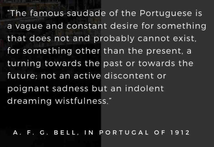 Saudade has probably become so central to the Portuguese identity due to the history of Portugal. Age-old longings for homeland remain ingrained from eras of colonialism, empire, and diaspora. Saudade seems embedded in the Portuguese psyche, as an old soul that perpetually yearns for what is lost.
