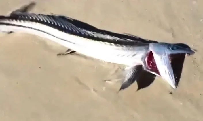 Strege, D. ‘Twilight Zone’ sea creature washes ashore after sonic boom. Yahoo News. [Notes: “I'm sure it's fine... IO! IO! All Hail Cthulhu!” “That's just the Kaiju starting to come through the rift....”]