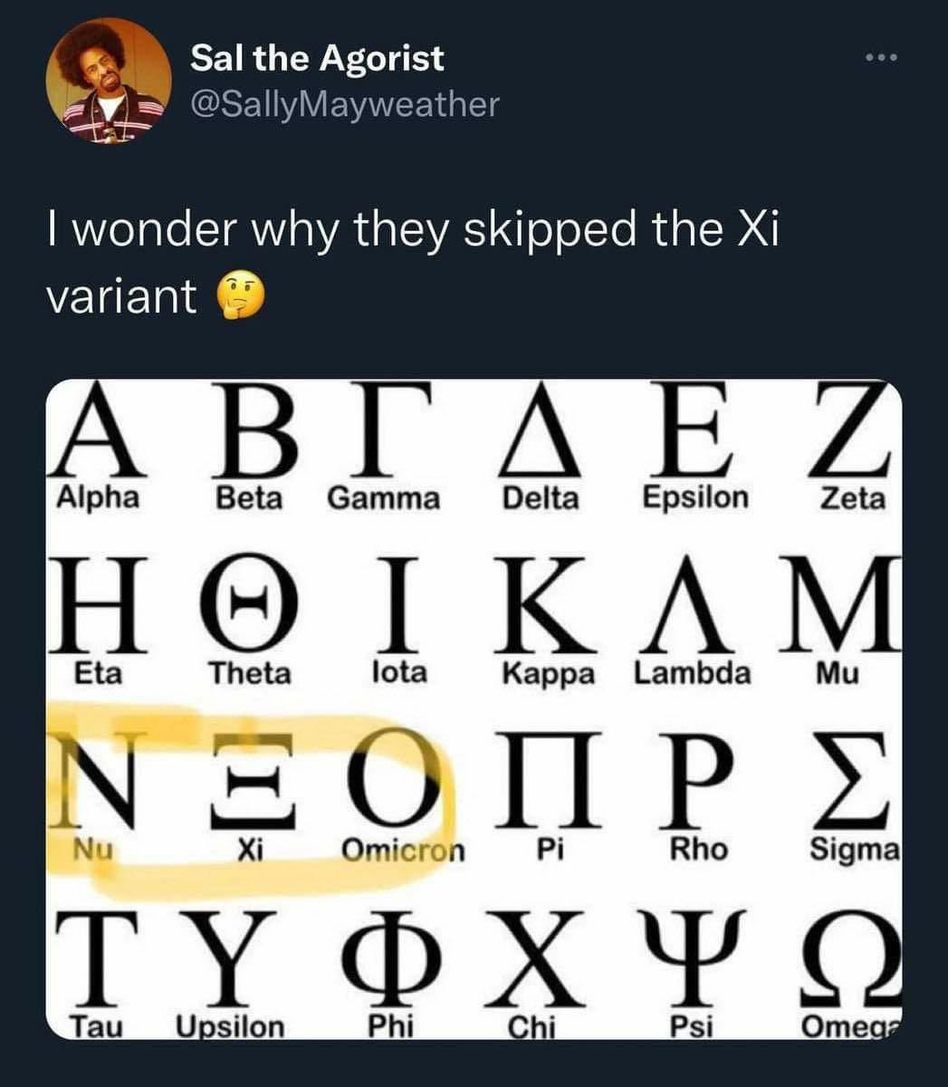 [Note: “Coincidental, eh?” “This new variant thing is utter bullshit. It's not even contagious. They never isolated it. What are they even testing for? This is such a mindfuck.” “It's just a new set of symptoms. How could they possibly isolate the causative factor, let alone test for it? It's straight from their planned list of to-be-released Greek variants. At the very most they may have a computer model of what the exosomes COULD look like, and call it a virus.” “The new set of symptoms are the exact symptoms the shots are causing. Perhaps the world might try a little harder not to be so gullible.”]