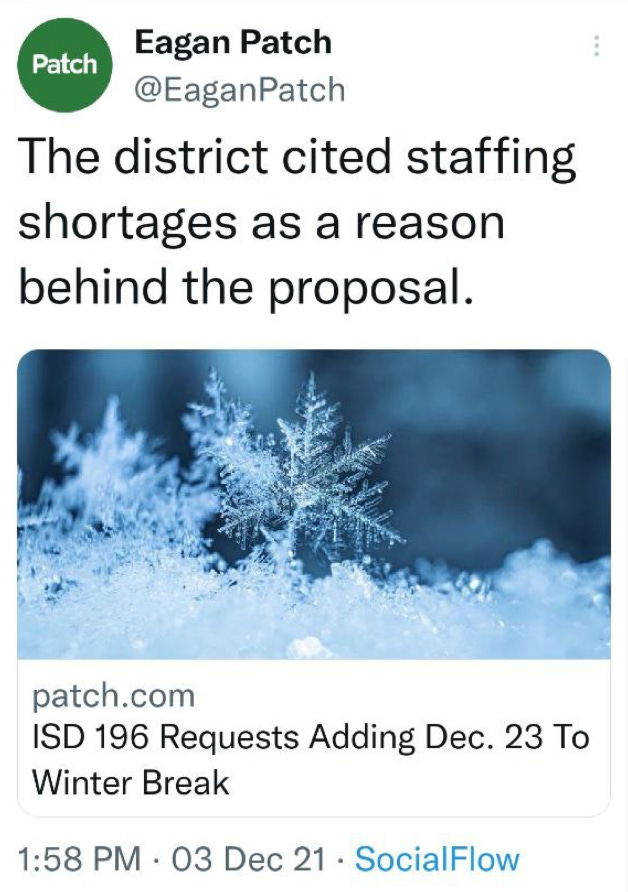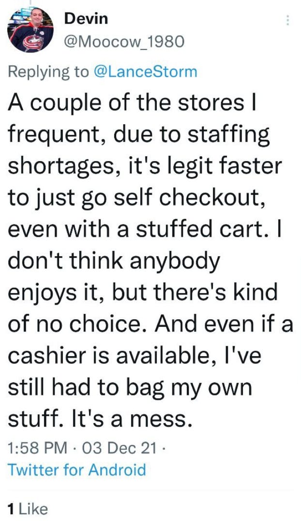 “I just wanted to let everyone know that at my job today at a small general store in California, the Lays chip representative said we would not be receiving anymore potato chip orders due to a potato shortage. So it looks like they are saying that there is a record potato harvest in Maine that can’t get to market due to lack of truck drivers to move product.”
