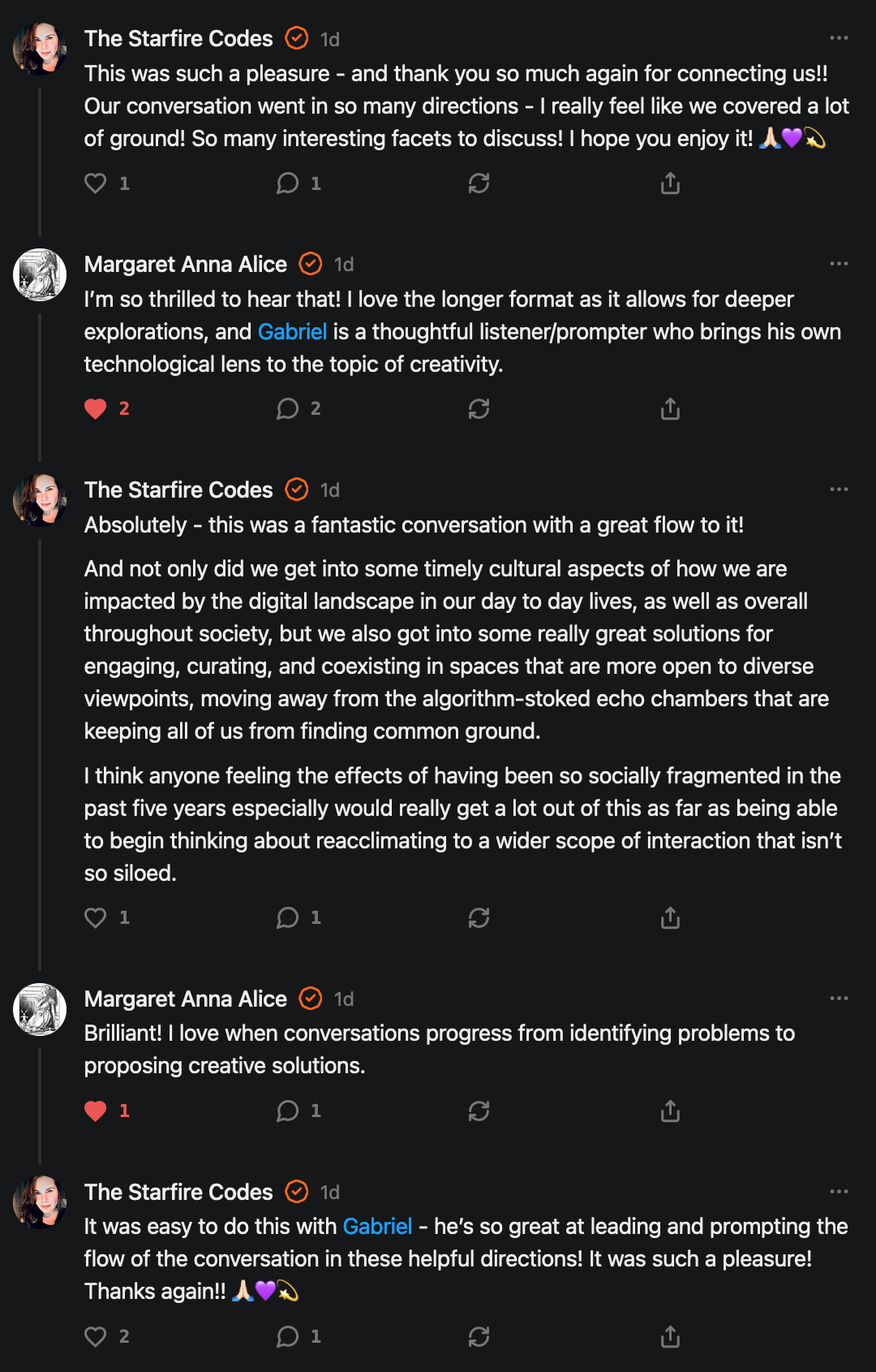 :One of my favorite things to do is connect fellow members of our karass, so it is a special delight to see Gabriel and The Starfire Codes coming together to spark off one another’s creativity and ingenuity. Looking forward to this conversation between two authentic, kindhearted souls of great talent and passion.