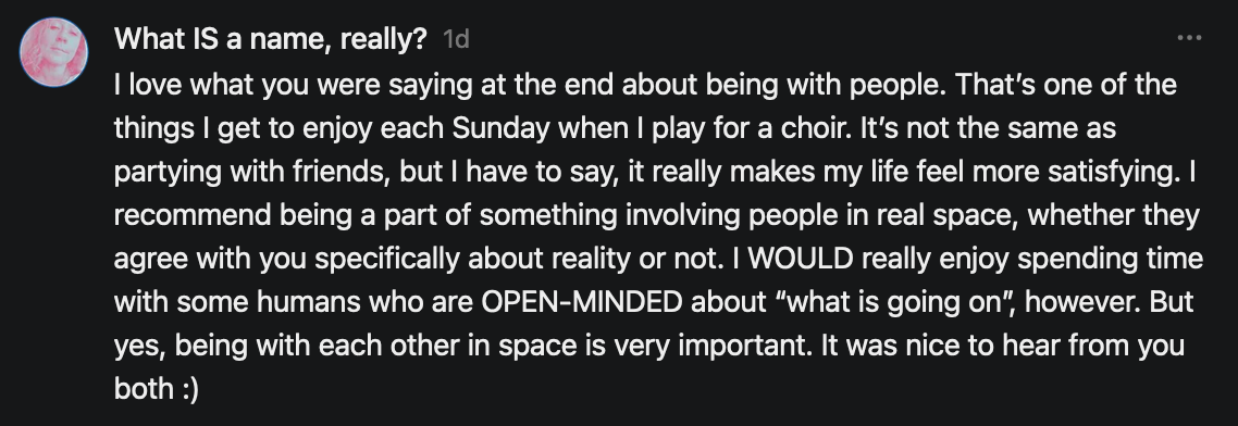 But at the crux of this, please understand that this has been the establishment of a space in which people can talk openly about their experiences - whatever those experiences might be, where we have made it possible to have meaningful discussions through text and audio, in which connections are established and prioritized, and civility is always maintained.