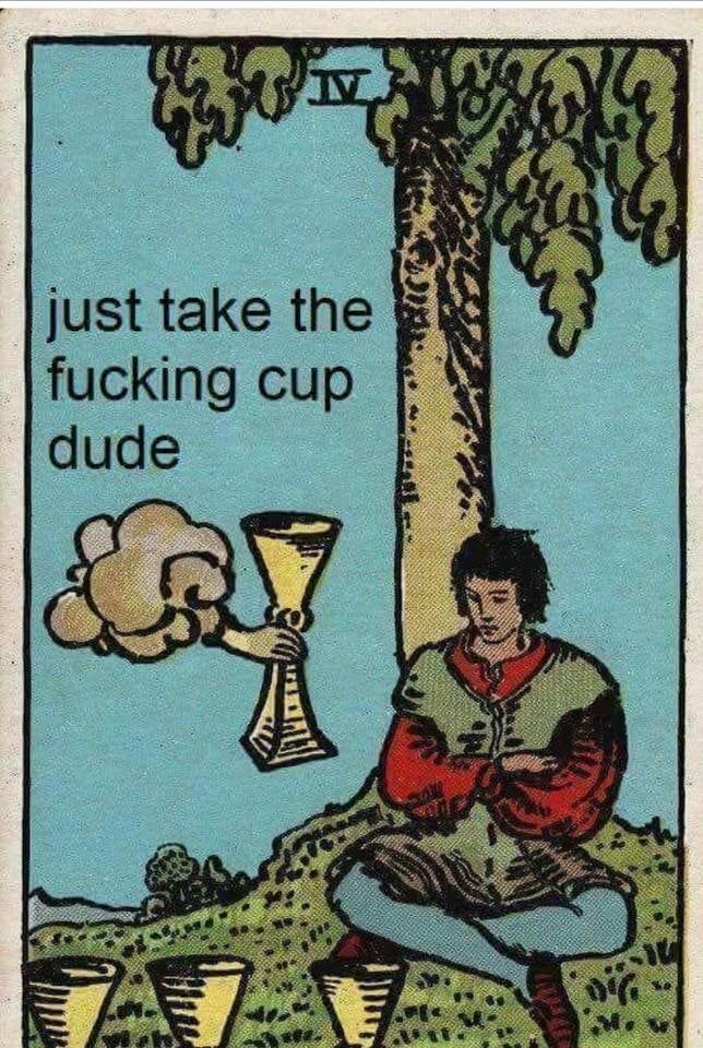 [In response to “The Four of Cups is an interesting card in the tarot because, while it depicts disappointment and dissatisfaction, it is also the card that charges us to take a deeper look at the old rejection and betrayal stories that have established patterns and programming that have been harming our ability to have emotional fulfillment. It is the energy that charges us to create new emotional foundations and patterning that support our joy and truth.” -